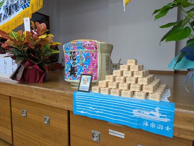鮮やかな水色が目を引く素敵な手拭いで、めでたい御祝いの場にご使用いただけて嬉しい限りです。